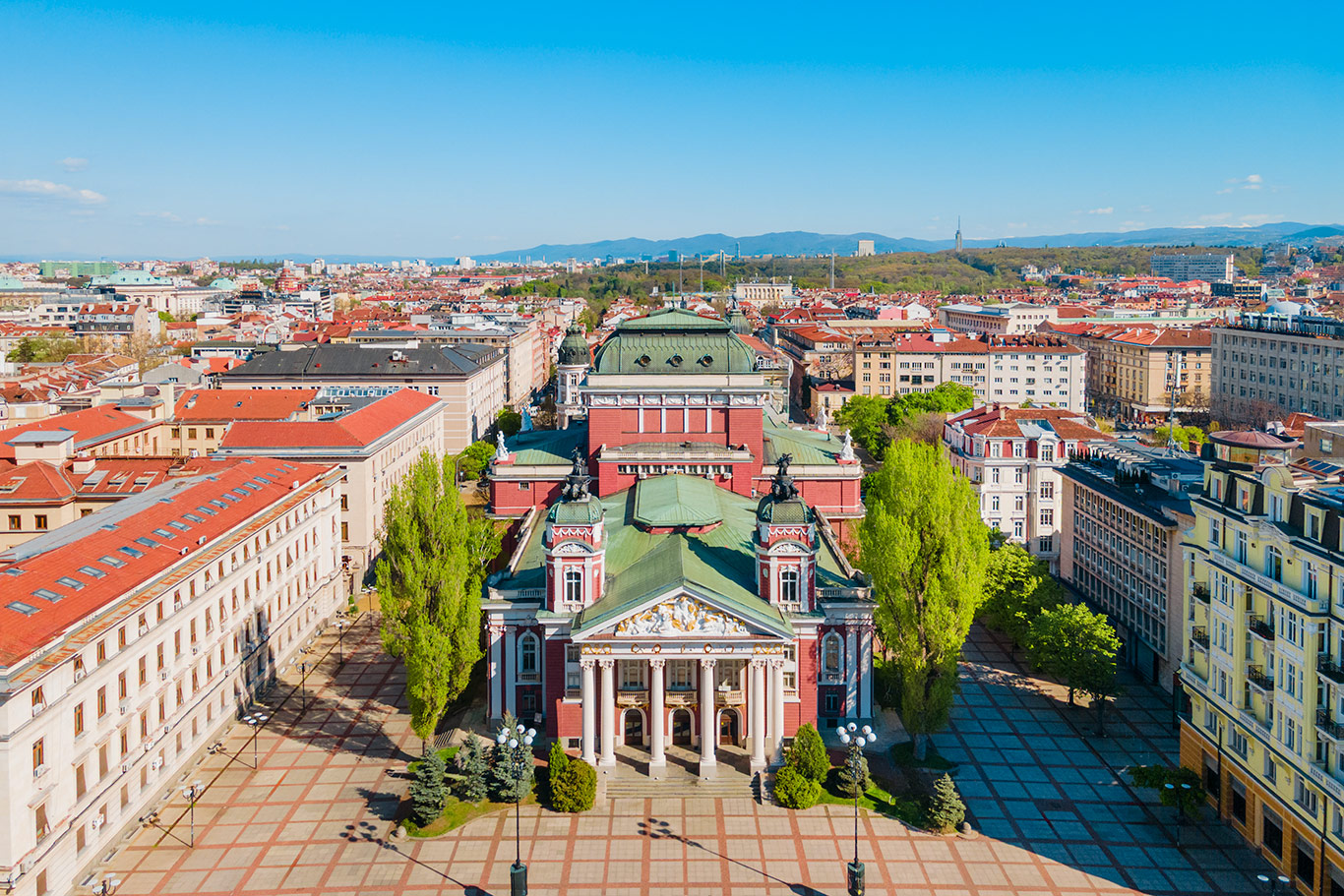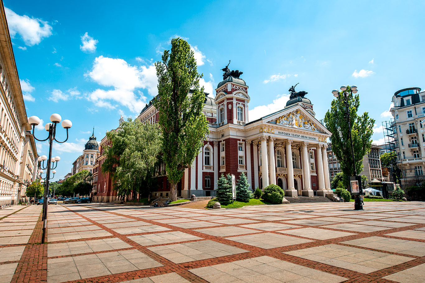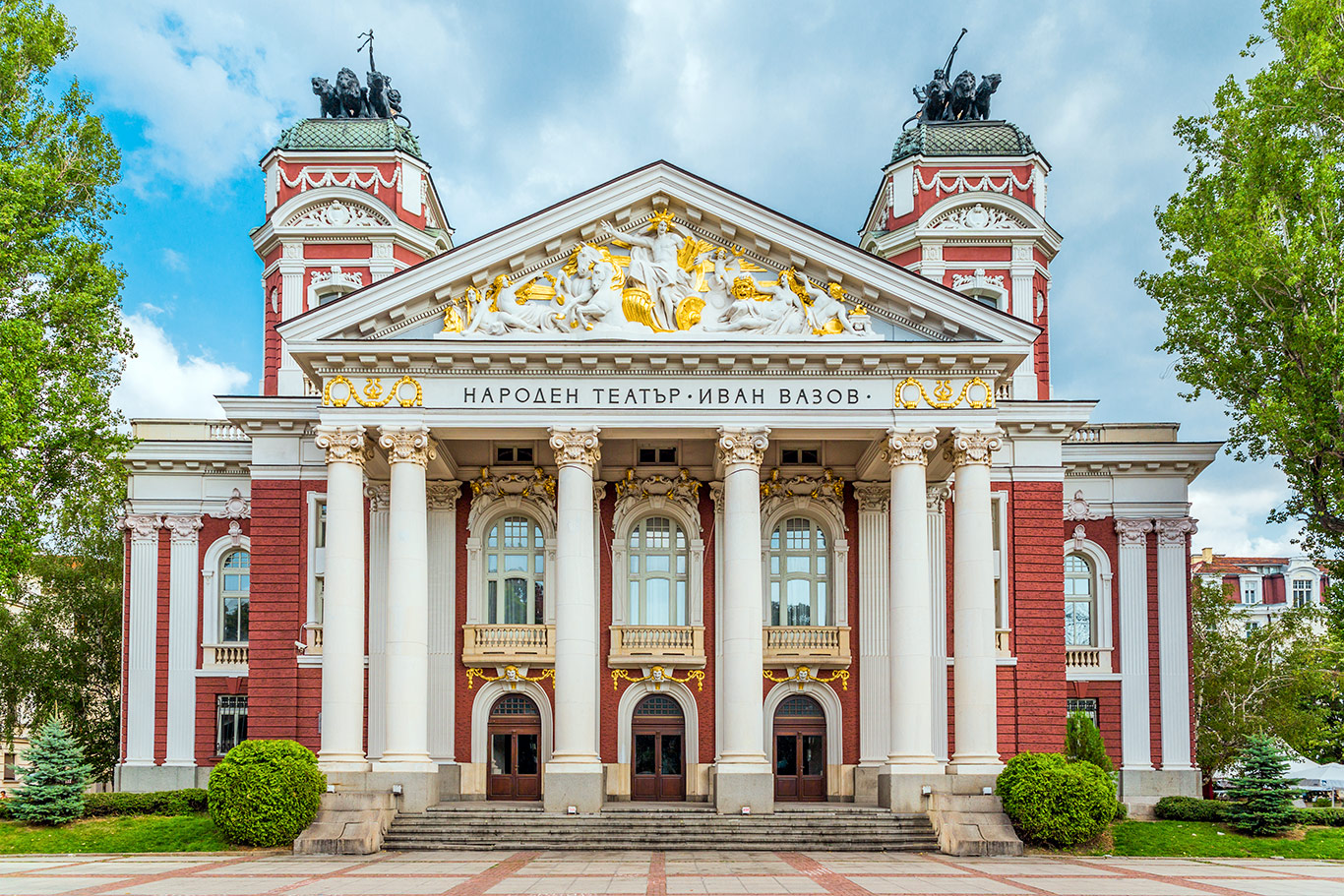 Najbardziej reprezentacyjny budynek kulturalny w kraju, wybudowany w stylu neoklasycystycznym z charakterystycznym czerwonym kolorem elewacji i białymi kolumnami. Znajduje się w samym sercu Ogrodu Miejskiego, gdzie mieszkańcy chętnie spotykają się przy fontannach. Teatr jest nie tylko ważnym ośrodkiem sztuki dramatycznej, ale także ulubionym tłem dla fotografii dzięki swojej bogato zdobionej fasadzie z rzeźbami przedstawiającymi greckich bogów i muzy.