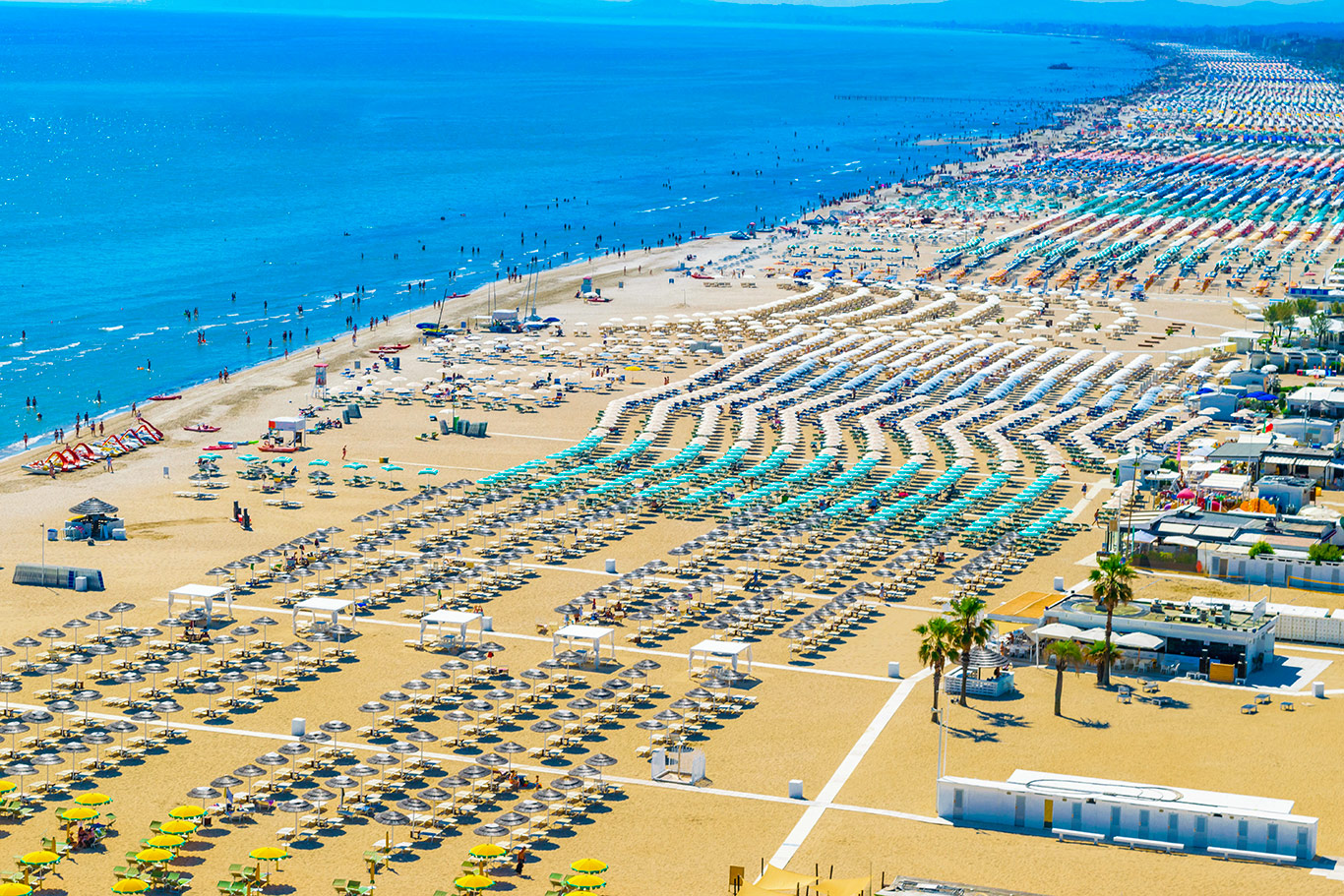 Marina Centro i plaże Rimini. Strefa nadmorska Rimini to 15 kilometrów szerokich, piaszczystych plaż, które od ponad stu lat stanowią centrum europejskiej turystyki wypoczynkowej. Marina Centro to najbardziej elegancka część wybrzeża, przy której stoi legendarny Grand Hotel, uwieczniony przez Felliniego, oraz liczne ekskluzywne butiki i wille w stylu secesyjnym. Plaże w Rimini są wzorowo zorganizowane, oferując nie tylko kąpiele słoneczne, ale także bogatą ofertę sportów wodnych, place zabaw dla dzieci i niezliczone bary plażowe działające do późnej nocy. Szeroka, nowoczesna promenada obsadzona palmami to idealne miejsce na wieczorne spacerowanie, jogging czy jazdę na rowerze przy szumie Adriatyku.